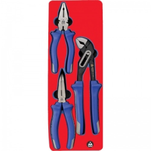 Набор инструментов 3 предмета пассатижи Мастак 5-3003 в ложементе из материала EVA предназначен для комплектации передвижных инструментальных тележек или слесарных верстаков при создании индивидуальных рабочих мест на станциях технического обслуживания автомобилей и других предприятиях, занимающихся обслуживанием и ремонтом различной техники.