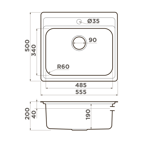 ширина 560 ммxдлина 480 ммxглубина 190 мм