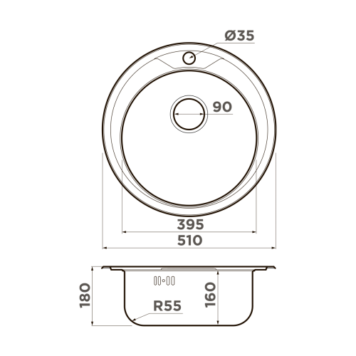 ширина 510 ммxдлина 510 ммxглубина 160 мм