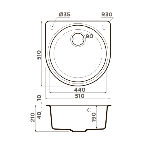 ширина 510 ммxдлина 510 ммxглубина 190 мм