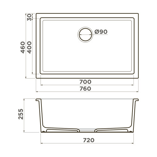 ширина 760 ммxдлина 460 ммxглубина 255 мм