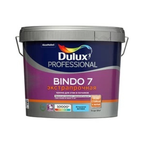 Краска моющаяся Dulux Bindo 7 экстрапрочная база BW белая 9 л