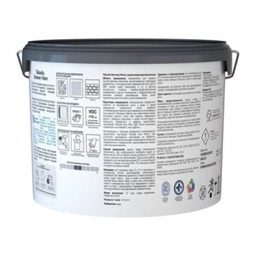 Водоразбавляемая краска на чистом акрилатном связующем. Предназначена для окраски новых и ранее окрашенных оштукатуренных, бетонных, зашпатлеванных, кирпичных, гипсокартонных и гипсовых поверхностей, а также древесностружечных и древесноволокнистых плит внутри помещения. Обладает хорошей стойкостью к очистке (выдерживает больше 10000 проходов щеткой), придает окрашенной поверхности бархатистый эффект. Выдерживает чистящие химикаты и слабые растворители, например, уайт-спирит. Применяется для окраски стен и потолков в гостиных, детских комнатах, спальнях и др. сухих помещениях. После обработки поверхности согласно инструкции по применению, краска "Гармония" подходит также для поверхностей ранее окрашенных алкидной краской. Не подходит для окраски дверей и мебели.
