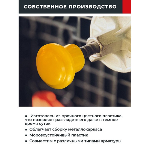 Защитный колпачок для арматуры 10-28 мм предназначен для обеспечения безопасности и предотвращения травматизма на строительной площадке. Плотно прилегает и не соскальзывает. Одевается на арматуру диаметром от 10 до 28.