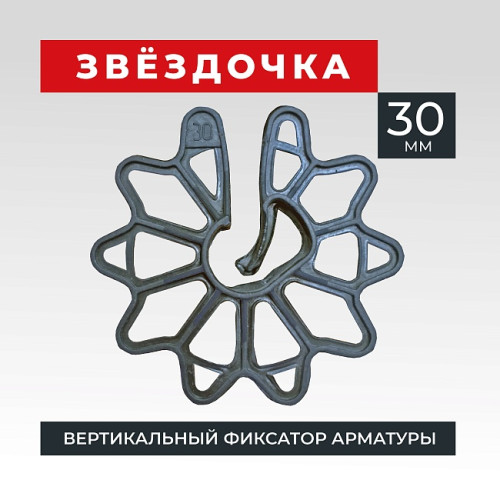 Фиксатор арматуры «Звездочка 30» применяется в строительстве при возведении вертикальных монолитных железобетонных конструкций. За счет своей прочности и легкости фиксирует арматурные прутья и предотвращает их контакт с поверхностью опалубки во время ее заливки.