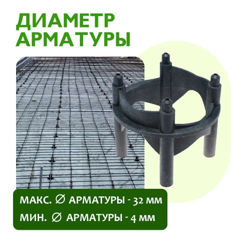 Фиксатор для арматуры Многоуровневый необходим для формирования защитного слоя в 25, 30, 35, 40 мм перед заливкой опалубки. Специальная форма и конструкция позволяет надстраивать фиксаторы друг на друга. При этом в каждый из ярусов возможно установить арматуру диаметром от 4 до 32 мм. Изготовлен из прочного пластика - устойчив к разрушению и перепадам температуры. Для установки на мягком, сыпучем грунте или изоляционном материале рекомендуется дополнительно использовать фиксатор «Подставка».