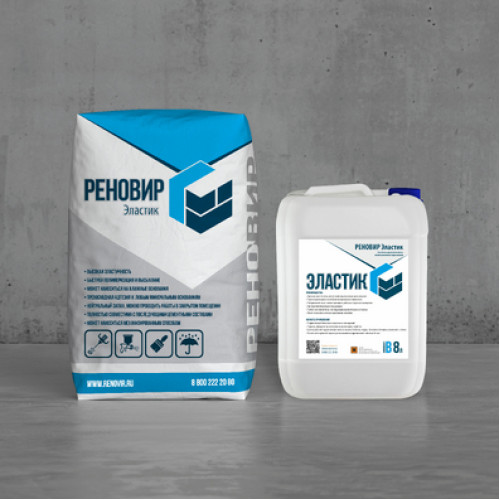 РЕНОВИР Эластик – двухкомпонентная полимерцементная композиция. При смешивании компонентов образуется низковязкая однородная суспензия, которая наносится на минеральное основание с помощью распылителя или кисти. После затвердевания покрытие обладает высокой эластичностью до минус 25 °С и водонепроницаемостью.