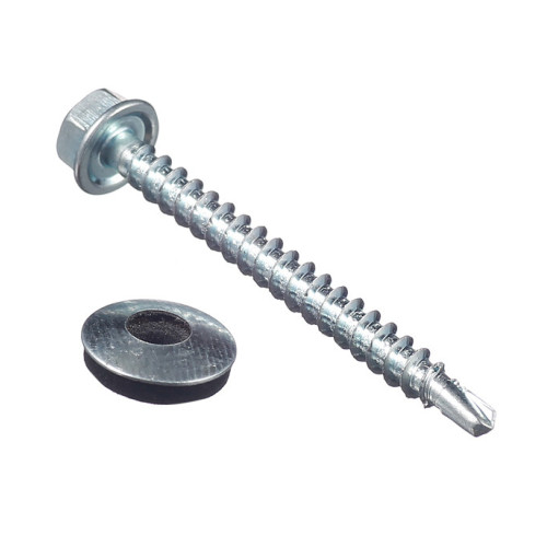 Предназначены для сквозного монтажа кровельных и облицовочных материалов (металлочерепица, профнастил, шифер оцинкованный) только к деревянным основаниям, без предварительного сверления прикрепляемого материала толщиной до 2,5 мм.\nСаморезы имеют шестигранную головку под ключ 8 мм и шайбу с резиновой уплотняющей прокладкой для герметизации соединения. Производятся из оцинкованной стали.\nСаморезы имеют полную резьбу.\n\nУплотнительная шайба служит для герметизации места крепления.