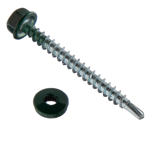 Саморезы кровельные с шестигранной головкой, шайбой с резиновой уплотняющей прокладкой и сверлом, на конце, позволяющим осуществлять монтаж без предварительного засверливания т.м. Саморезы Daxmer предназначены для крепления листов металлочерепицы и комплектующих, а также профнастила к деревянному каркасу и маркируется символом "М". Данный символ гарантирует высокое качество‚ долговечность‚ надёжность крепежа и здания в целом. Саморезы кровельные изготавливаются из стали марки С 1022, которая проходит обработку, закалку и оцинковку. Согласно чертежам и техническим заданиям в строгом соответствии с международным стандартом DIN и системой качества ISO 9001. Контроль качества начинается с момента закупки сырья и материалов‚ завершается жестким тестированием готовой продукции.\n\nСпособ монтажаСаморезы завинчиваются строго перпендикулярно обрешетине. Неправильное завинчивание и перекос уплотнителя самореза могут привести к образованию сквозного отверстия.ОсобенностиКачество стали и заточка сверлящего наконечника исключают нарушение структуры металла вокруг высверливаемого отверстия, что значительно снижает риск появления коррозии монтируемых листов. Цветное покрытие самореза не только повышает коррозионную стойкость, но и дополняет внешний вид готового изделия. Окраска соответствует цветовому каталогу RAL.В качестве герметизирующего уплотнителя и компенсатора температурных деформаций кровли используется запрессованная в шайбу прокладка. Шайба при монтаже сама вулканизируется на кровлю, обеспечивая герметичное и долговечное соединение. Она устойчива к постоянным изменениям нагрузок, перемене температур и УФ-излучению.