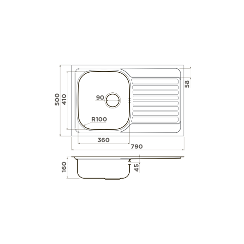 ширина 790 ммxдлина 500 ммxглубина 160 мм