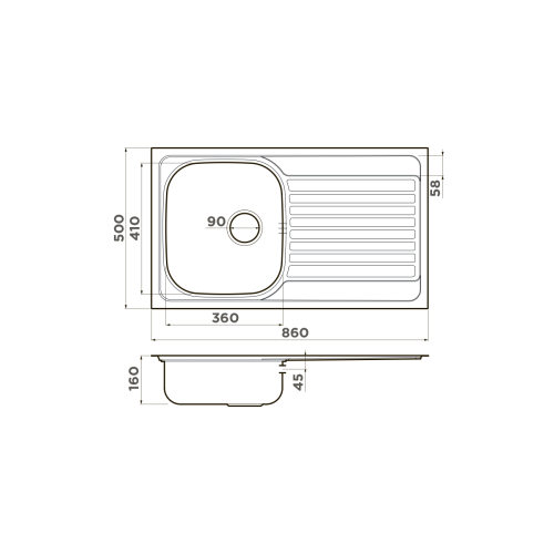 ширина 860 ммxдлина 500 ммxглубина 160 мм