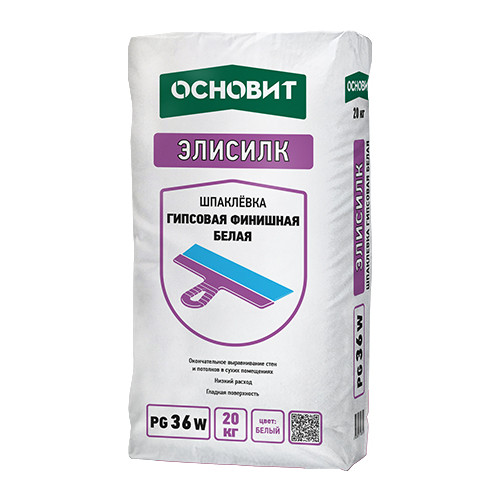 Шпаклевка ОСНОВИТ ЭЛИСИЛК PG36 W предназначена для окончательного выравнивания стен и потолков, для заделки швов ГКЛ и ГВЛ.