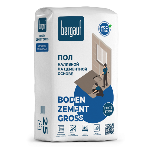 Засыпать сухую смесь в приемный бункер. Установить начальный расход воды3. Довести консистенцию раствора до необходимой, путем регулирования уровня расхода воды. 3Количество воды для сухой смеси определяется типом машины для нанесения и консистенцией, необходимой для работы. Расход воды выставляется таким образом, чтобы получить консистенцию наливного пола, аналогичную получаемой при затворении смеси вручную, указанным на упаковке количеством воды. При машинном нанесении необходимо учитывать, что готовый раствор не должен находиться в смесителе и шлангах в неподвижном состоянии более 30 минут. Перед заливкой пола необходимо выставить отметки на стенах с помощью лазерного уровня и отбивочного (малярного) шнура, а также в центре комнаты установить специальные (штыревые) маяки. По периметру комнаты необходимо наклеить демпферную ленту (высота ленты должна быть больше толщины нанесения Boden Zement Gross на 1 см, минимальная толщина ленты 5 мм). Нанесение раствора необходимо производить от дальнего угла (по отношению к дверному проему), постепенно двигаясь к выходу. Первая порция раствора выливается непосредственно в угол, последующие порции необходимо выливать с частичным наплывом (минимум 2 см) друг на друга. Каждую порцию раствора следует прокатывать игольчатым валиком. При ручном способе нанесения время между порциями раствора, которые выливаются на основание, должно быть не более 20 мин. Длина иголок валика должна превышать толщину заливки не менее чем на 5 мм. Прокатывание игольчатым валиком должно быть завершено не позднее, чем через 15 минут после выливания раствора. Деформационные швы организуются через 24 часа после нанесения пола. Швы должны быть перпендикулярны друг другу, площадь между ними, по возможности, должна максимально совпадать с формой квадрата. Расстояние между параллельными швами должно быть 3-6 м, ширина шва 3-5 мм, глубина – треть толщины стяжки. Швы должны совпадать с осями колон и швами плит перекрытия. При устройстве теплого пола следует руководствоваться СП 29.13330.2011. Внимание! При устройстве пола в помещениях со сложной геометрической формой требуется прорезка деформационных швов после твердения смеси. Деформационные швы необходимо организовывать в дверных проемах, сужениях в помещениях с неправильной геометрической формой и с диагональю более 10 метров. Также при устройстве пола следует повторить имеющиеся в основании деформационные швы.