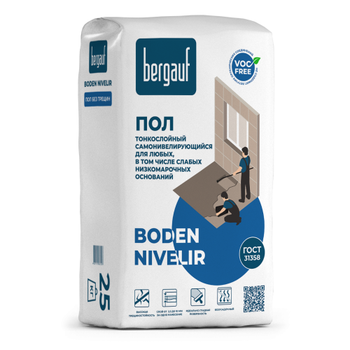 ПОРЯДОК РАБОТЫ при ручном и машинном нанесении: Засыпать сухую смесь в приемный бункер. Установить начальный расход воды****. Довести консистенцию раствора до необходимой, путем регулирования уровня расхода воды. ****Количество воды для сухой смеси определяется типом машины для нанесения и консистенцией, необходимой для работы. Расход воды выставляется таким образом, чтобы получить консистенцию смеси, аналогичную получаемой при затворении смеси вручную, указанным на упаковке количеством воды. При машинном нанесении необходимо учитывать, что готовый раствор не должен находиться в смесителе и шлангах в неподвижном состоянии более 30 минут. Перед заливкой пола необходимо выставить отметки на стенах с помощью лазерного уровня и отбивочного (малярного) шнура, а также в центре комнаты установить специальные (штыревые) маяки. По периметру комнаты необходимо наклеить демпферную ленту (высота ленты должна быть больше толщины нанесения Bergauf Boden Nivelir на 1 см, при заливке пола толщиной до 5 мм допускается не использовать демпферную ленту). Нанесение раствора необходимо производить от дальнего угла (по отношению к дверному проему), постепенно двигаясь к выходу. Первая порция раствора выливается непосредственно в угол, последующие порции необходимо выливать с частичным наплывом (минимум 2 см) друг на друга. Каждую порцию раствора следует прокатывать игольчатым валиком. При ручном способе нанесения время между порциями раствора, которые выливаются на основание, должно быть не более 20 мин. Длина иголок валика должна превышать толщину заливки не менее, чем на 5 мм. Прокатывание игольчатым валиком должно быть завершено не позднее, чем через 15 минут после выливания раствора. Деформационные швы организуются через 24 часа после нанесения пола. Швы должны быть перпендикулярны друг другу, площадь между ними, по возможности, должна максимально совпадать с формой квадрата. Расстояние между параллельными швами должно быть 3-6 м, ширина шва 3-5 мм, глубина – треть толщины стяжки. Швы должны совпадать с осями колон и швами плит перекрытия. Внимание! При устройстве пола в помещениях со сложной геометрической формой требуется прорезка деформационных швов после твердения смеси. Деформационные швы необходимо организовывать в дверных проемах, сужениях в помещениях с неправильной геометрической формой и с диагональю более 10 метров. Также при устройстве пола следует повторить имеющиеся в основании деформационные швы.